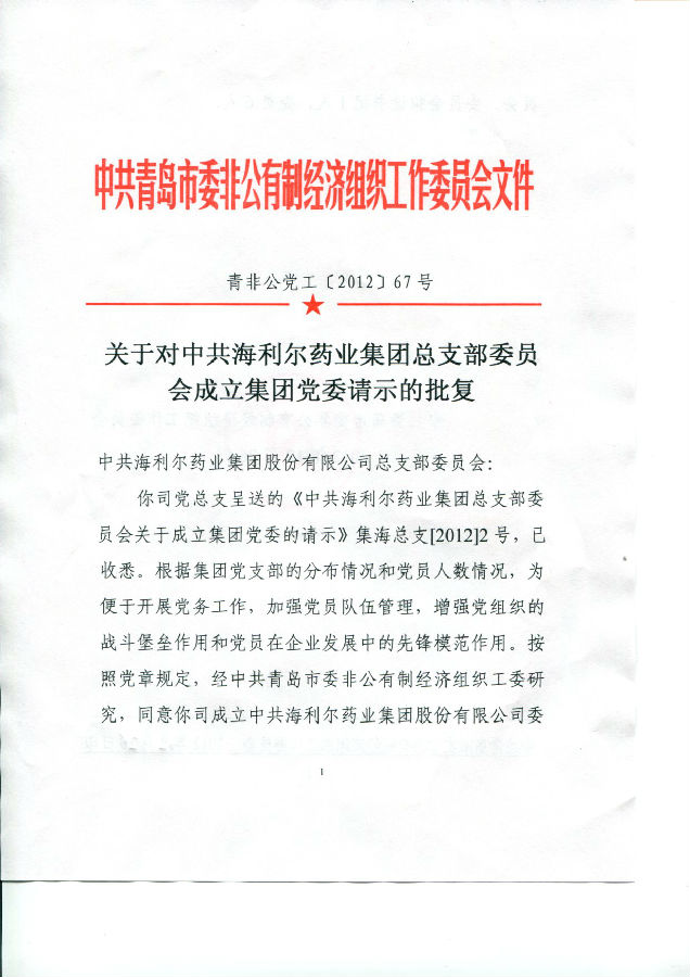 ——中共青岛市委非公有制经济组织工作委员会批复,sunbet申搏党总支升格为党委
