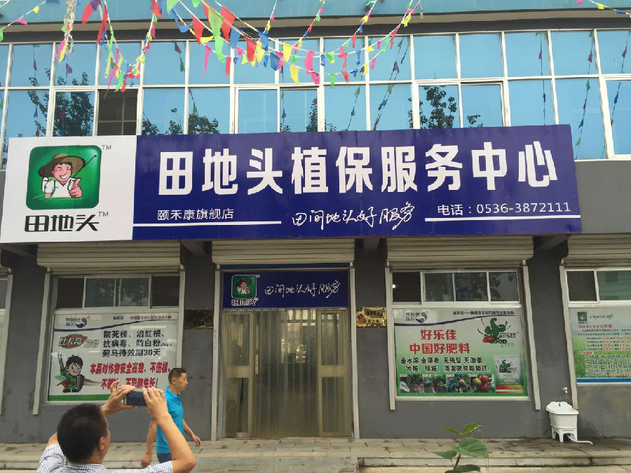 “田地头”包括互联网线上、线下两部分业务。线上,推出了田地头APP,为农民免费推送病虫害防治信息,帮助农民进行农技咨询。线下,整合原有渠道资源,选取服务实力强、百姓口碑好的经销商,设立品牌加盟店。加盟店拓展了经营种类和范围,提供国、内外大品牌的种、肥、药、械、技、品配套物资,让种、管、收、销综合服务业态成为主流。