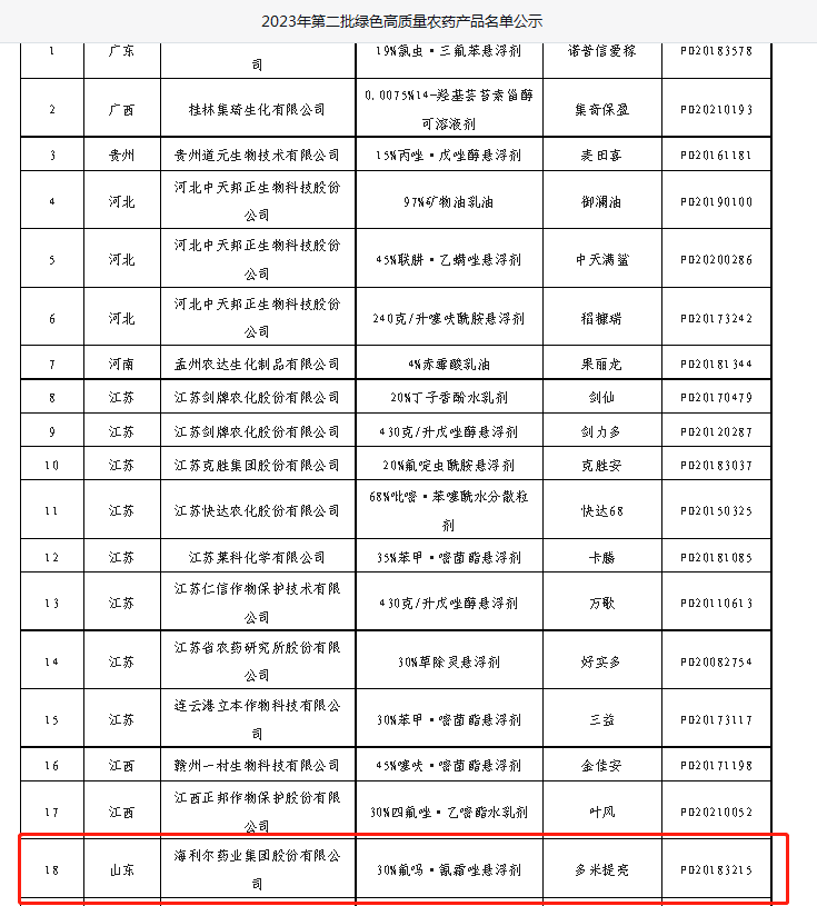 参照T/CCPIA 170-2021《绿色高质量农药产品评价规范》团体标准为基础,中国农药工业协会开展了绿色高质量农药产品申报工作。最终,经协会形式审查并组织专家综合审定,由农药生产/经营单位自愿申报的43个产品中有36个产品符合T/CCPIA 170-2021标准要求并进入了“第二批绿色高质量农药产品公示名单”。sunbet申搏专利产品多米提亮(有效成分:20%氟吗啉 · 10%氰霜唑悬浮剂成功入围名单。