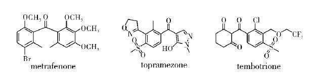 10余年前曾有人提出,在二甲芳基间以羰基为“桥”进行连接通常无农药活性,但以后出现了一些以羰基为连接键的新农药,其中可能有新理论,对新农药的创制大有裨益。图3为以羰基为连接键的新农药品种。