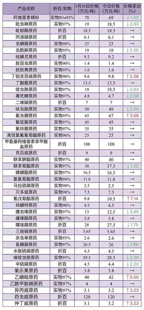 数据显示,与往年同期相比,当前市面上常见的杀虫剂价格都出现不同程度的上涨,一些种类的农药价格涨幅甚至超过100%。据了解,今年农药价格上涨的直接原因,就是农药原药价格的大幅度上涨。烯啶虫胺原药上涨幅度最高,达到93.55%,每吨价格为30万元。