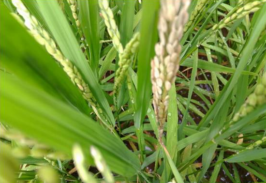 嘧甲防治区,齐穗期水稻发病轻绿,病害发生很轻