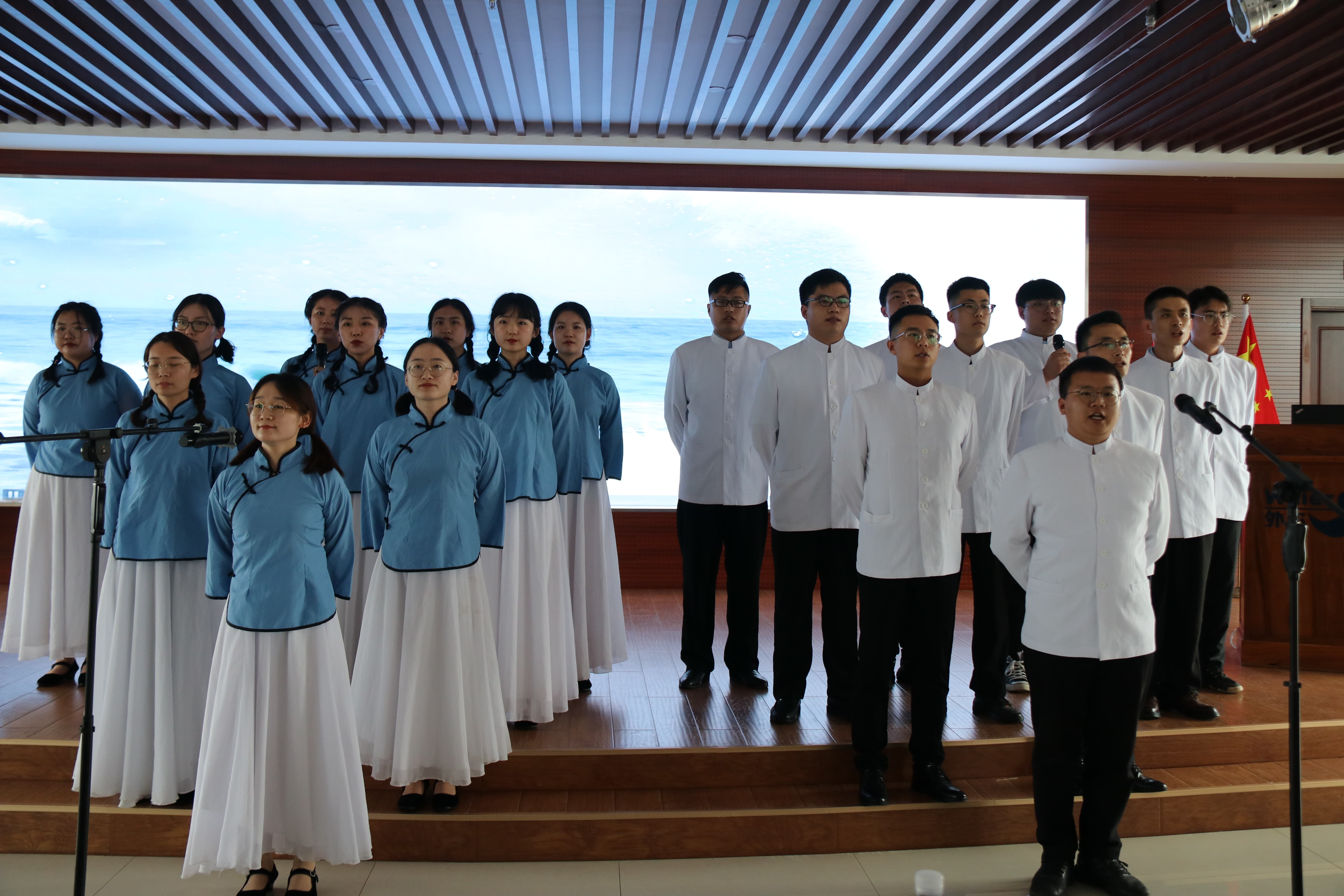 最后,全场共同高唱《歌唱祖国》,在高昂激扬的歌声中,庆祝活动圆满落幕。