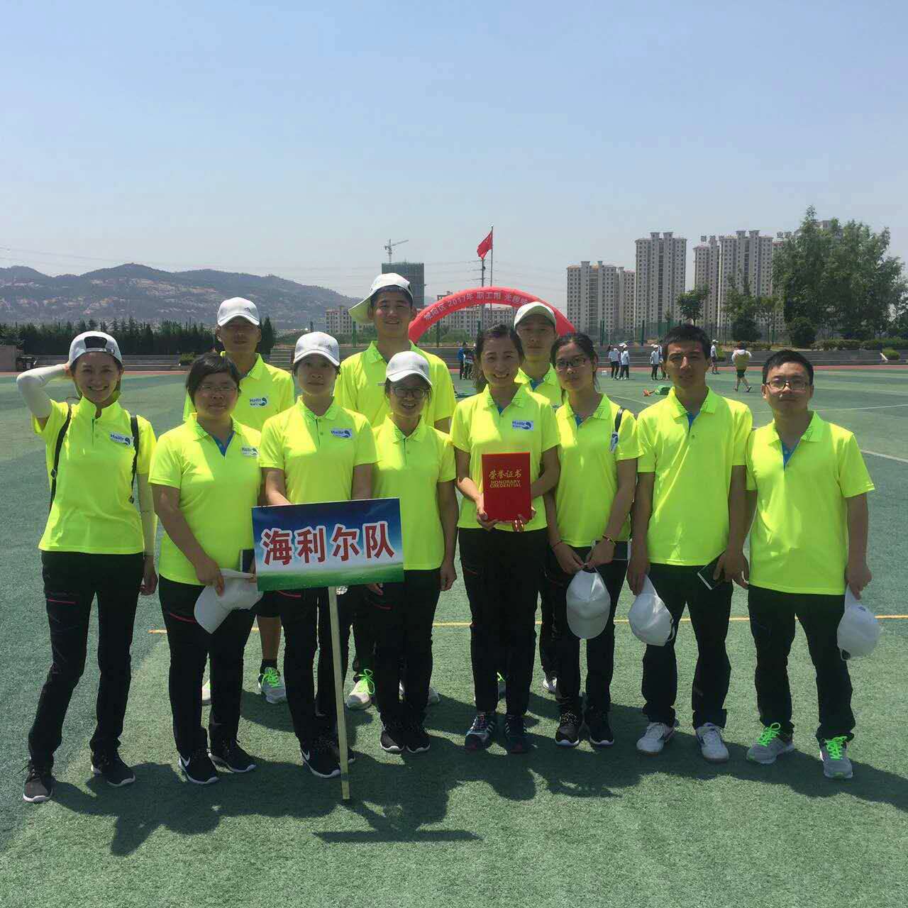 5月26日,由青岛城阳区总工会主办、夏庄街道总工会承办的2017城阳区职工趣味运动会在夏庄街道中心体育场举办。运动会共设置了抢滩登陆、动力火车、万众齐心跳、众星捧月、勇攀高峰5个集体趣味比赛项目。来自全区的21个代表队、260多名职工参加了此次比赛。经过一番趣味横生、洋溢欢笑的紧张比赛,海利尔代表队取得了第三名的好成绩。