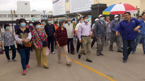 8点20分,我厂派出两名职工分别到都霖馨苑小区和后田村小区迎接参观居民。9时许,居民已全部到厂,并在工厂篮球场集合。