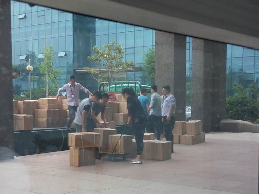 2016年5月27日下午行政部库管接到通知需入库150箱货品,每箱重量约30公斤。这是项考验力量与持久力的任务。靠她自己在短时间内根本无法完成的一项艰巨任务。
