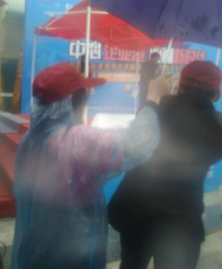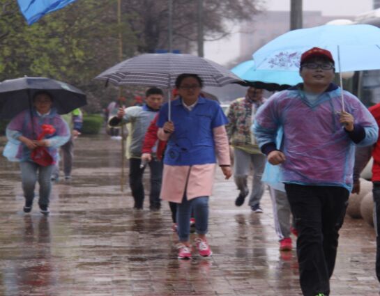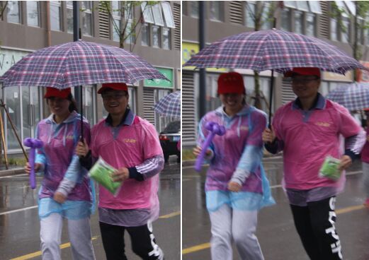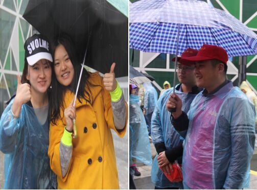 小雨很给力,签到的功夫就变成了中雨,大家“抱团取暖”,积蓄能量,蓄势待发: