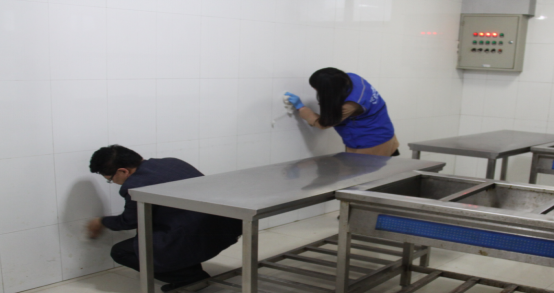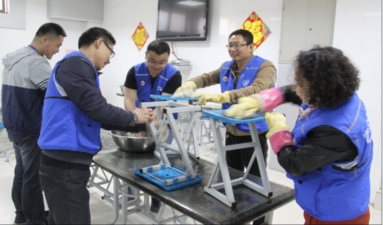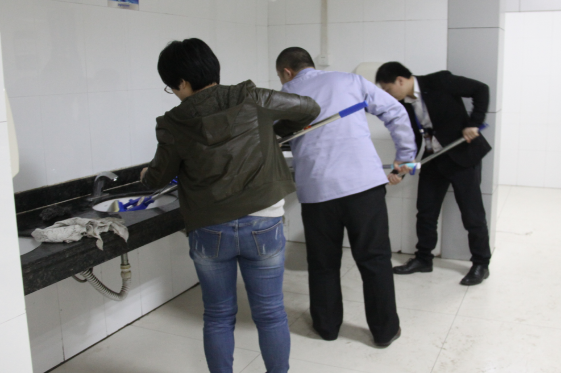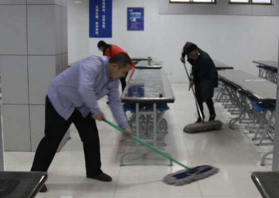 大家穿着统一的蓝色马甲,一下子意识到了自己的身上的责任和使命。我们这次活动的主要任务是清理餐厅和家属楼一单元。大家明确分工,领着工具便风风火火开展起来。让我们一起来看看志愿者的风采吧: