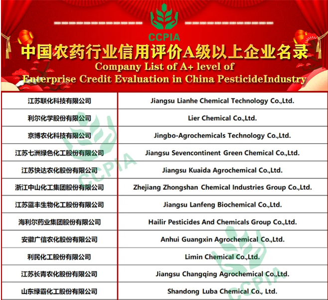 10月11日,中国农药工业协会在上海召开第二十届全国农药交流会,会议期间中国农药工业协会向全社会隆重发布了2020年中国农药行业企业信用评价等级的名单,sunbet申搏入选中国农药行业信用评价A级以上企业名录。