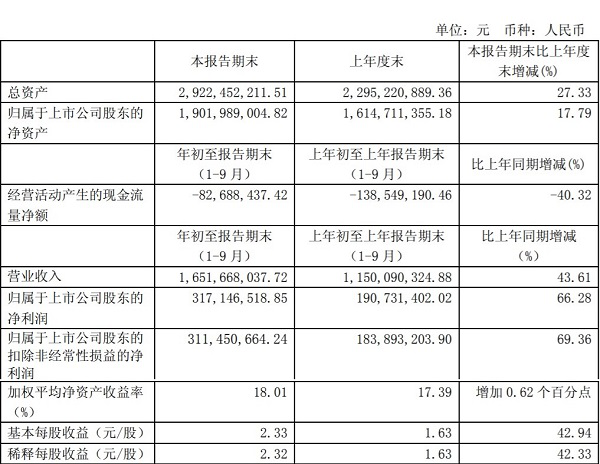 sunbet申搏(以下简称“海利尔”)近日发布了2018年第三季度报告,报告显示,公司前三季度营业收入1,651,668,037.72元,同比增长43.61%,前三季度归属于上市公司股东的净利润317,146,518.85元,同比增长66.28%。
