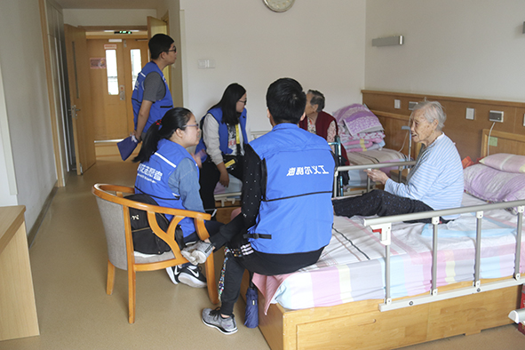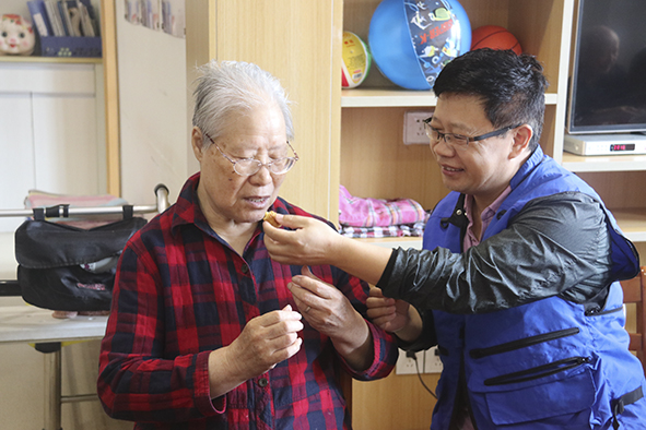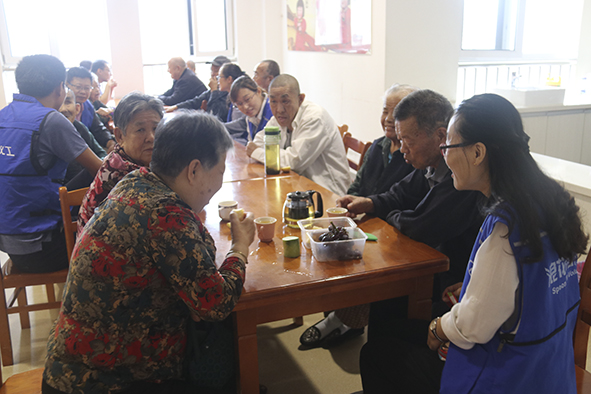在福利中心,志愿者们和老人们亲切交流,关切地询问老人们的生活起居以及身体状况。有的志愿者将月饼切成小块,仔细地送到老人口中,让老人提前感受中秋团圆的气氛。有的志愿者和老人们一起拍手唱歌,将快乐用歌声传递,语笑嫣然中流动的是浓浓深情。