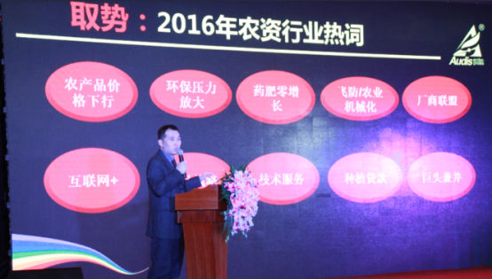 sunbet申搏国内制剂营销中心市场总监陆元丁对农资行业的现状进行了解读并从取势、明道、优术三个方面阐述了奥迪斯下一步的战略规划。他提到,奥迪斯具备清醒的自我认识,看清并把握了农资行业的发展趋势,将凭借其在定位、产品、团队方面的优势抓住发展的机遇。他强调,奥迪斯有着清晰的战略规划,定位于做农药杀菌剂的领航者,专注于高端杀菌剂,在2017年,奥迪斯将通过细化管理,打造大品,强化队伍,提升服务四方面切实将战略转化为实际的行动和成果。他表示,奥迪斯愿与经销商朋友通力合作,共同打造厂商利益共同体、命运共同体,区域作物综合服务平台。