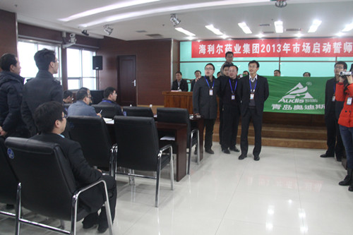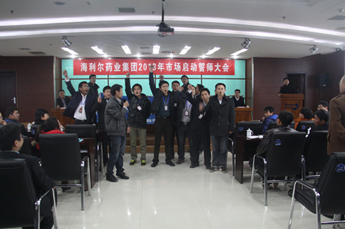 下午3点,誓师大会在激情高昂的《海利尔之歌》歌声中拉开了帷幕,大会开始,首先由销售经理吕德勇为大家讲解《集团公司2013年营销考核政策》,2013年考核政策的激励性比往年有大幅的提升,受到了销售精英们的高度认可和热烈响应;随后,品牌运营中心部长李勇对《2013年产品投放要求》进行了讲解,使大家的产品销售推广思路更加清晰了;最后,销售经理莫德阳上台做了动员讲话,他的激情感染了全场,也进一步增强了销售精英再创佳绩的信心。